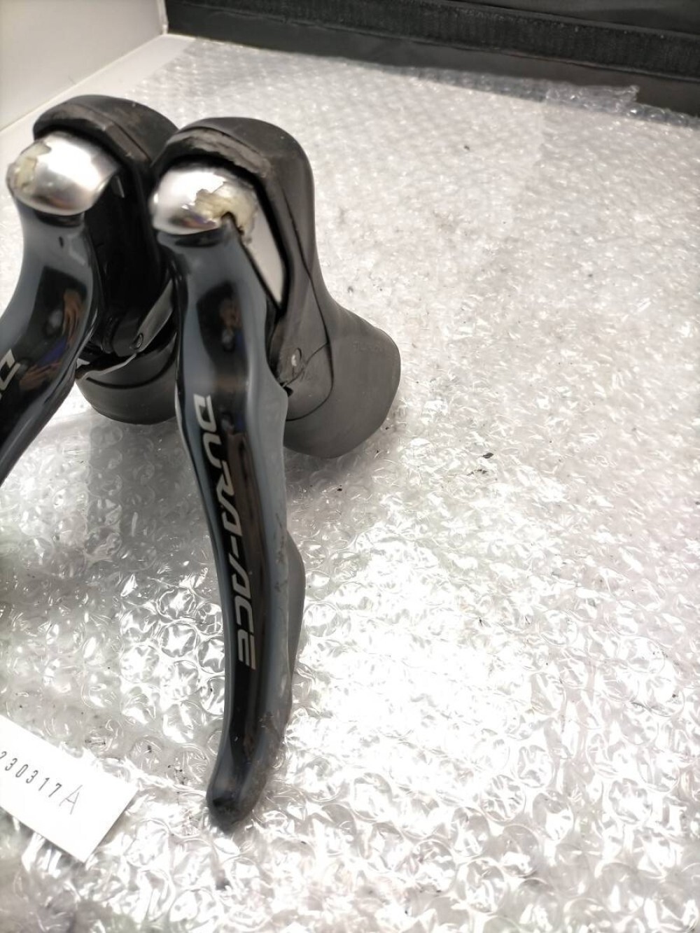 Attention cyclistes exigeants ! Voici une paire de leviers combinés (frein et dérailleur) Shimano Dura-Ace ST-9000, pour transmission 2x11 vitesses. C'est du haut de gamme Shimano, léger et performant. Ils sont vendus d'occasion, et le vendeur est transparent : ils présentent des rayures et de la saleté dues à l'usage (voir photos). Fonctionnellement, ils devraient être OK, mais n'attends pas du neuf. Ils sont en aluminium, couleur noire, et fabriqués au Japon. Ils ne comprennent QUE les leviers eux-mêmes (shifters) – les câbles, gaines, poignées, etc., ne sont pas inclus sauf s'ils sont sur la photo. Compatibles avec les vélos de route équipés de freins à étriers standard (pas disque). Parfaits pour upgradé un vélo, remplacer des leviers endommagés, ou pour un projet de rénovation. À réserver aux bricoleurs avertis ou à faire vérifier par un pro avant montage, vu leur état d'occasion. Une opportunité pour avoir du Dura-Ace à prix réduit.