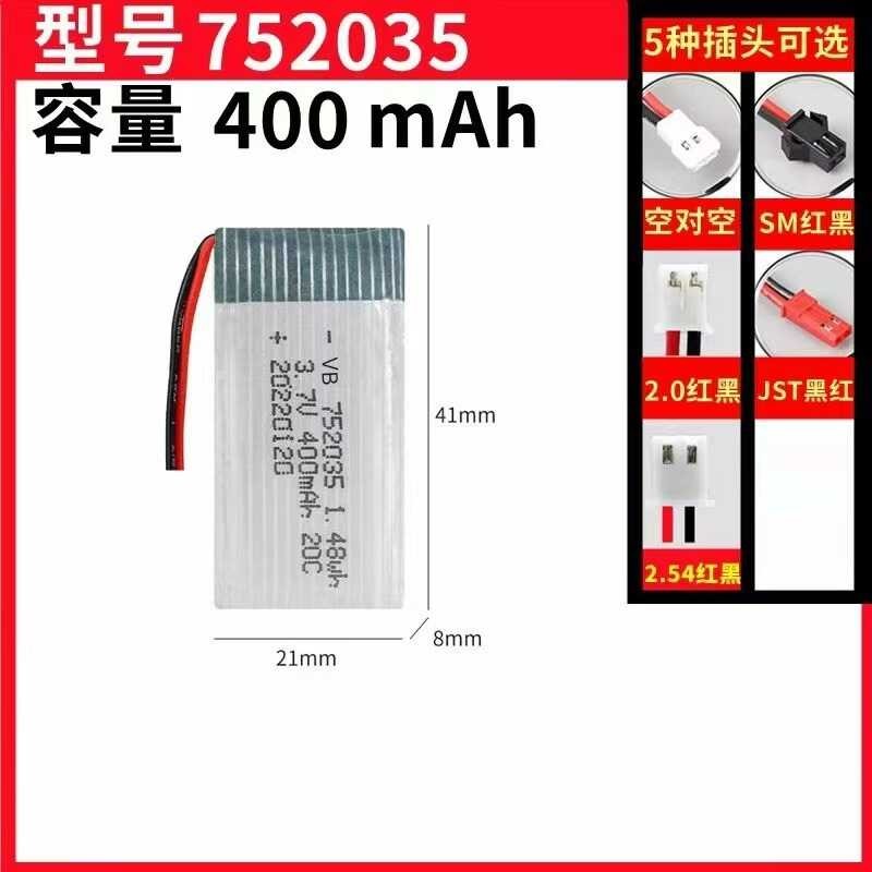 Hey les pilotes de modèles réduits ! Ce lot comprend deux batteries LiPo de 400mAh et 3.7V, avec un connecteur MX2.0. Elles sont neuves, jamais utilisées, dans leur emballage d'origine. Les dimensions sont 7.5x20x40mm, donc assez compactes. Elles sont compatibles avec des modèles comme le X5CX, M68, 905, CX-30, et d'autres petits appareils à faible consommation (low drain devices). Fabriquées en Chine, avec une garantie de 3 mois. Parfaites pour des drones miniatures, des voitures télécommandées, ou tout gadget électronique portable. Si tu as besoin d'autonomie supplémentaire ou de remplacer des batteries fatiguées, ce pack de deux est très pratique. Légères et puissantes, elles te permettront de prolonger tes sessions de jeu ou de vol.
