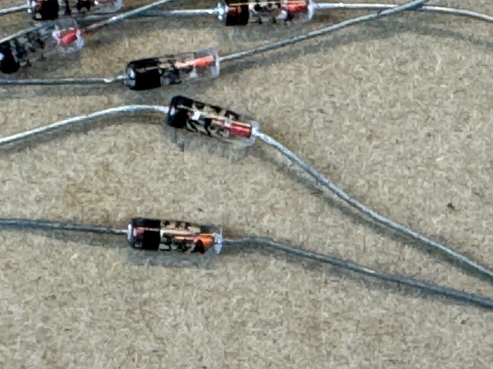 Hey ! Tu cherches des diodes germanium vintage pour restaurer un vieil ampli ou un poste radio ? Ce lot de 10 diodes 1N34A est fait pour toi. Ce sont des pièces NOS (New Old Stock) de la marque Solid State Systems (SSS), fabriquées aux USA dans les années 80. Elles sont neuves, jamais utilisées, et vendues dans leur emballage d'origine. Parfaites pour les projets audio vintage, les pédales d'effet ou les réparations de matériel ancien. Le son chaud du germanium, c'est unique ! Ces diodes sont des références pour les amateurs de son vintage. Vérifie bien ton schéma, le modèle 1N34A est souvent requis. Elles arrivent telles qu'elles étaient stockées à l'époque. Idéal pour le bricolage électronique rétro. Pense à consulter mon annonce pour tous les détails. Envoi rapide et soigné !