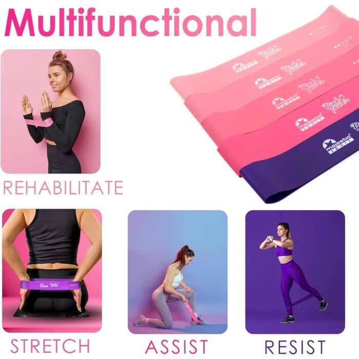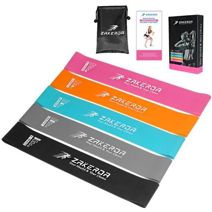 Pour ton entraînement à la maison, en salle, ou en rééducation, ce lot de 4 à 5 bandes de résistance en latex naturel 100% est vraiment complet. Elles offrent plusieurs niveaux de résistance, du extra light au strong, donc que tu sois débutant ou confirmé, tu trouves la bande qui te convient. Utilisables pour le renforcement des bras, des pectoraux, des fessiers, du dos... mais aussi pour le Pilates, le yoga, ou les étirements. Chaque bande est solide, élastique et ne laisse pas de résidus. Parfaites pour varier les exercices sans avoir à investir dans des machines coûteuses. Livrées neuves, généralement avec une petite pochette de rangement. Marque générique, mais qualité premium pour le prix. Si tu veux sculpter ton corps, améliorer ta souplesse, ou rééduquer en douceur, ces bandes sont tes meilleures alliées. Pratiques, légères, et hyper efficaces !