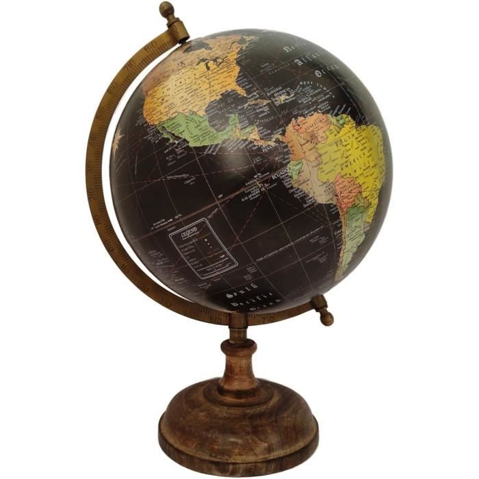 Hello ! Un globe, c’est toujours classe dans un salon ou un bureau. Celui-ci est en métal et plastique, noir et or, il tourne et s’éclaire ! Hauteur 34 cm, idéal sur une table ou une étagère. De la collection Leonardo, modèle LP46193. Neuf, jamais utilisé, dans sa boîte. Parfait pour décorer ou pour apprendre la géo aux enfants. Alors, on voyage depuis son canapé ?