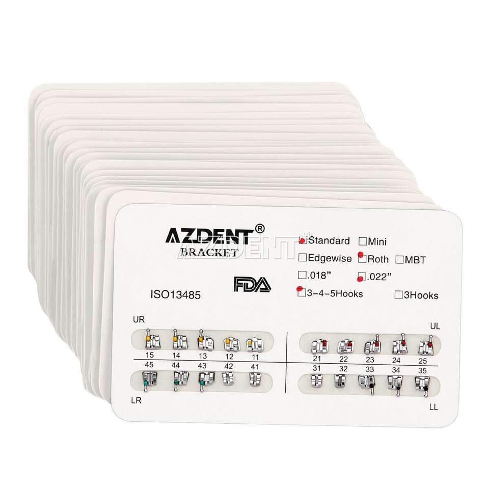 Pour les orthodontistes et les laboratoires dentaires, ce lot de 100 brackets MBT Standard est parfait. Slot .022, avec crochets 3-4-5, en métal résistant. Marque AZDENT, référence TC1340203900, fabriqué en Chine. Neuf sous emballage. Idéal pour la pose d’appareils dentaires fixes, ces brackets assurent une précision et une durabilité optimales. Si tu veux stocker des pièces de qualité pour tes traitements, ce pack économique est une excellente option. Hygiénique, fiable, prêt à l’emploi. Un must dans ta pratique quotidienne !