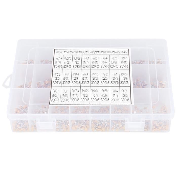 Ce kit de 700 condensateurs céramique MLCC est neuf, jamais utilisé, dans son emballage d’origine. Il contient 35 valeurs différentes, allant de 8 pF à 2,2 uF. Parfait pour les passionnés d’électronique, les réparations, les prototypes ou les projets DIY. Marque : sans marque (unbranded). Condition : neuve. Chaque condensateur est de type monolithique céramique (MLCC), idéal pour les circuits haute fréquence, le filtrage, le découplage. Livré dans une boîte de rangement pratique. Aucun EAN ou UPC applicable. Un must-have pour votre atelier électronique. Utilisez-les pour apprendre, réparer des appareils ou créer vos propres montages. Les valeurs courantes sont incluses, ce qui évite d’acheter séparément chaque condensateur. Qualité correcte pour les projets hobby et éducatifs. Attention : convient aux personnes ayant des connaissances en électronique. Commandez ce kit complet et gardez toujours la bonne valeur sous la main !