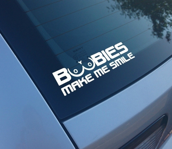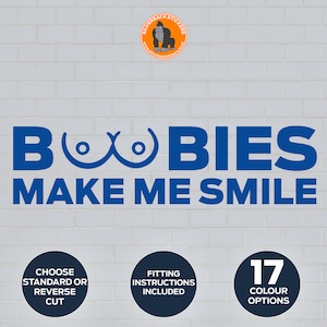 Hey ! Pour ajouter une touche d’humour et de personnalité à ton véhicule, voici cet autocollant vinylique \Boobies Make Me Smile\ (littéralement « Les nichons me font sourire »). Dimensions : 7 pouces de large sur 2,5 pouces de haut. Finition mate, qualité Oracal, fabriqué aux États-Unis.