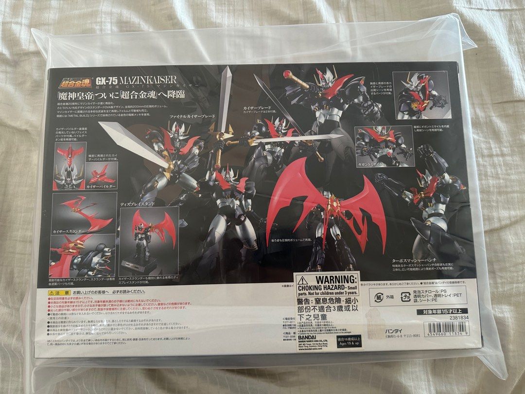 Pour les collectionneurs de robots japonais ! Cette figurine Soul of Chogokin Mazinkaiser (réf. GX-75) de Bandai Tamashii Nations est un bijou de détail et de transformation. Occasion en très bon état (selon le vendeur). Dimensions environ 26 x 8 x 38 cm. Matériel métal et plastique de qualité, articulations nombreuses. Idéale pour l'exposition, la manipulation ou pour compléter une collection Chogokin. Pièce rare, appréciée des fans de Mazinger et de mechas vintage. Vérifiez les photos et la description du vendeur pour l'état exact. Un must-have pour les passionnés de jouets transformables haut de gamme. Prêt à dominer votre étagère !