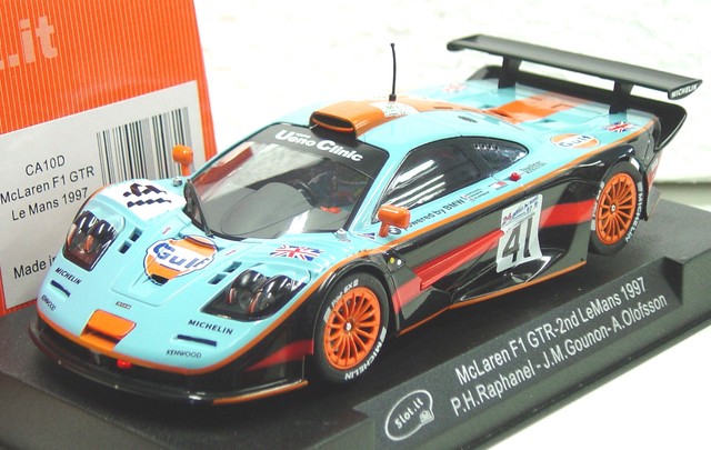 Les amateurs de course et de slot cars, cette McLaren F1 GTR est pour vous ! Réalisée par la marque réputée Slot It, elle reproduit fidèlement la voiture n°27 qui a couru à Parabolica en 1997, à l'échelle 1/32. Elle est neuve, dans son blister. Elle est équipée d'un aimant néodyme puissant pour une meilleure adhérence sur le circuit. Le niveau de détail est impressionnant : peinture, décalcomanies, forme aérodynamique. Référence SICA10L, UPC 8058773081209. Que vous soyez un collectionneur ou un pilote de slot car aguerri, cette machine est un must-have. Prête à être mise sur rail et à enchaîner les tours à toute vitesse ! Un bel objet à offrir ou à s'offrir.