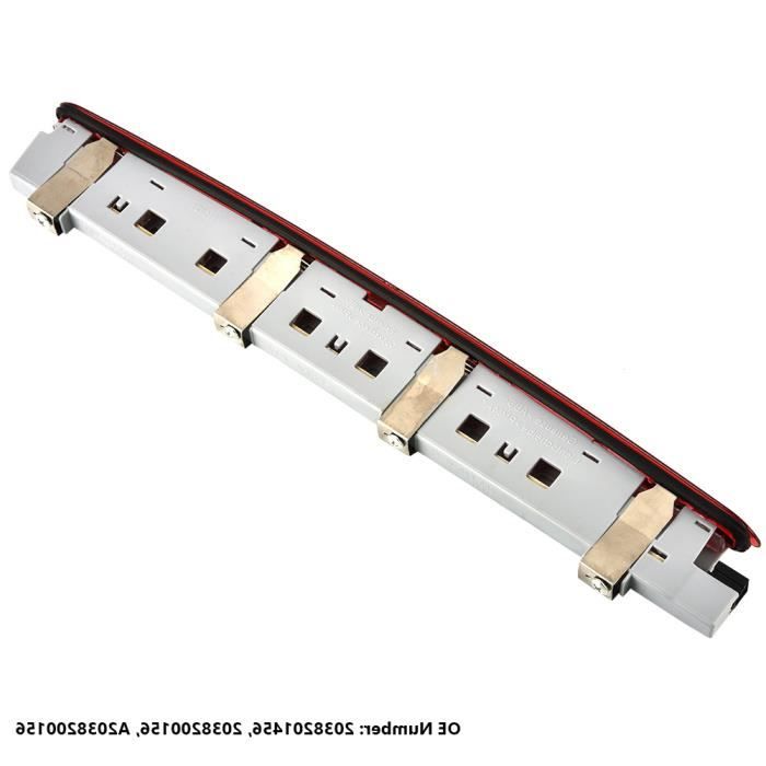 Besoin de remplacer un feu stop sur votre Mercedes Classe C W203 ? Ce troisième feu stop arrière LED est fait pour vous ! Compatible avec les modèles C230, C280, C320 et autres de la gamme W203 produits entre 2000 et 2007. Il est NEUF, avec des LEDs rouges pour une luminosité intense et une longue durée de vie. Lentille rouge. Il remplace les numéros OE/OEM : 2038200156, 2038201456, A2038201456. Marque générique (unbranded), mais de bonne facture. Facile à installer pour qui s'y connaît un peu en mécanique auto. Parfait si votre ancien feu est cassé, fissuré, ou si les ampoules grillent souvent. Améliorez aussi votre visibilité et votre style avec cette technologie LED moderne. Numéro de pièce du fabricant : non applicable. UPC : non applicable. Une pièce essentielle pour la sécurité et la conformité de votre véhicule. Vendu à l'unité.