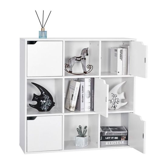 Ce meuble de rangement 9 cubes de la marque HOMCOM est ultra pratique pour organiser votre salon, bureau ou chambre. En MDF blanc, design moderne et épuré, il offre 9 cases carrées (env. 29,5x29,5 cm) pour ranger livres, DVD, déco, jouets... Dimensions totales : 91 cm de large x 91 cm de haut x 29,5 cm de profondeur. Charge max par étagère : 2 kg. Il est neuf, en carton d'origine, mais nécessite un montage (assez simple). Garantie 6 mois. Fabriqué en Chine. Idéal pour gagner de l'espace sans se ruiner. Pensez à le fixer au mur si vous avez des enfants, pour plus de sécurité.