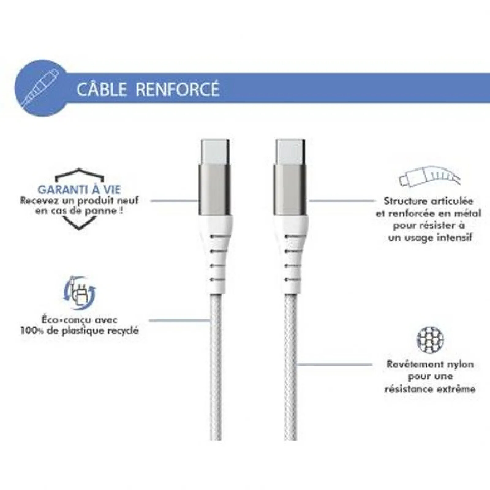 Ce câble Micro USB JuicEBitz® est parfait pour recharger rapidement vos appareils et transférer des données. Section 20AWG, il supporte une charge rapide jusqu'à 3A, idéal pour les smartphones et tablettes compatibles. Fabriqué avec des conducteurs en cuivre étamé pur, pour une transmission efficace et durable. Câble robuste, avec revêtement résistant aux torsions. Longueur variable selon le modèle, à vérifier dans la description. Inclut une attache Velcro pour ranger facilement le câble. Compatible avec de nombreuses marques : Samsung, Huawei, Sony, LG, etc., et modèles spécifiques comme Galaxy S5-S7, Huawei P8 lite, etc. Couleurs disponibles : rouge, noir, blanc, gris. Garantie fabricant de 18 mois. Fabriqué au Royaume-Uni. Parfait pour remplacer un câble usé ou pour avoir un câble de qualité supérieure à la maison, au bureau ou en déplacement. Connecteurs Micro USB et USB standard. Envoi avec le câble et l'attache, prêt à l'emploi.