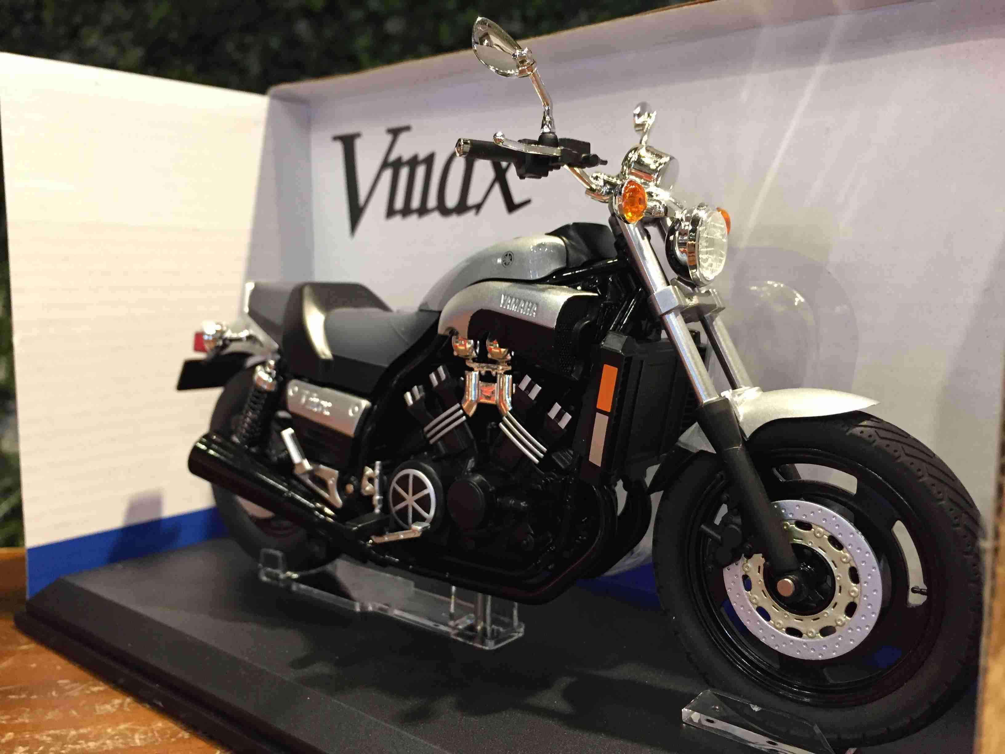 Ce modèle réduit de la mythique Yamaha VMAX (ou V-Max) est un bel objet pour les collectionneurs de motos ou les fans de la marque ! À l'échelle 1/12, il est en alliage (kirksite) moulé sous pression, ce qui lui donne un bon poids et des détails fins. Il mesure une vingtaine de centimètres. Il est fabriqué par Aoshima, une marque japonaise reconnue. Parfait pour exposer sur une étagère, un bureau, ou comme cadeau pour un passionné. Attention, ce n'est pas un jouet pour jeunes enfants en raison des petites pièces. Produit neuf. La moto est fidèlement reproduite, avec son look musclé caractéristique. Une pièce qui attire toujours le regard dans une collection de modèles automobiles ou motocyclistes.