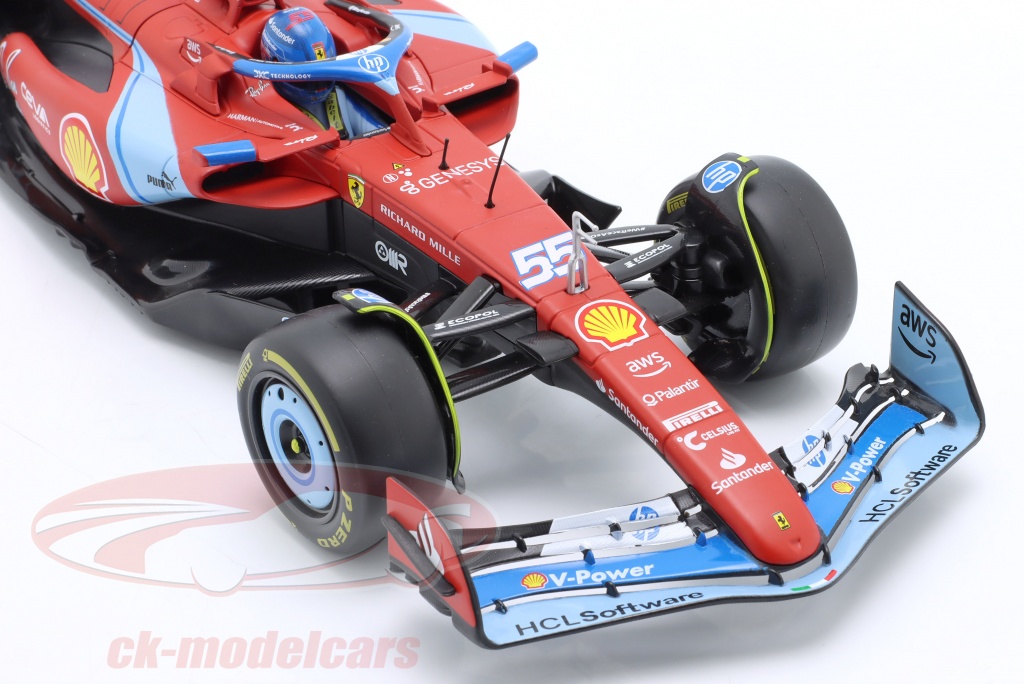 Hey les fans de F1 et de Ferrari ! Ce modèle réduit Bburago au 1/18 de la SF-24 pilotée par Carlos Sainz en 2024 est une pure tuerie. Il est neuf, sous boîte, jamais exposé. En métal et plastique, les détails sont soignés pour le prix : aileron, cockpit, logos... Parfait pour compléter ta collection, l'offrir à un passionné, ou le poser fièrement sur ton bureau. À partir de 14 ans, mais avouons-le, les adultes l'adorent aussi. La référence est 16815-S/55. Si tu cherches un cadeau qui fait plaisir à coup sûr ou un nouvel élément pour ton circuit miniature, c'est celui-là. Prêt à remporter la victoire sur ton étagère !