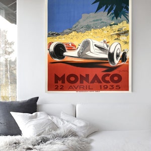 Cette affiche est neuve, jamais affichée. Un vrai coup de cœur pour les fans de sports automobiles et d'ambiance rétro !\n\n- Sujet : Grand Prix de Monaco 1935 (un incontournable de l'histoire)\n- Style : Vintage, vraiment dans l'esprit des années 30\n- Format : A4 (21 x 29,7 cm), pratique à encadrer\n- Création : Période 1900-1949 (authentique dans le style)\n- Couleur : Imprimé en couleur pour un rendu riche\n- Type : Poster classique, parfait pour un cadre\n- Fabriqué au : Royaume-Uni\n\nL'impression est de bonne qualité, les détails sont bien rendus. C'est le genre d'affiche qui raconte une histoire. Super pour décorer un bureau, un garage, un coin bar à la maison, ou pour offrir à un passionné de F1 ou de belles voitures anciennes.\n\nElle est livrée à plat, bien protégée. Vous n'avez plus qu'à choisir un joli cadre (non fourni) et à l'accrocher. Attention, c'est une reproduction dans un style vintage, pas un original de 1935 bien sûr, mais le charme est totalement là. Une pièce unique pour ajouter une touche d'histoire et de passion à votre déco !