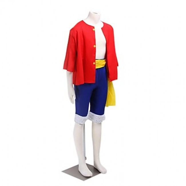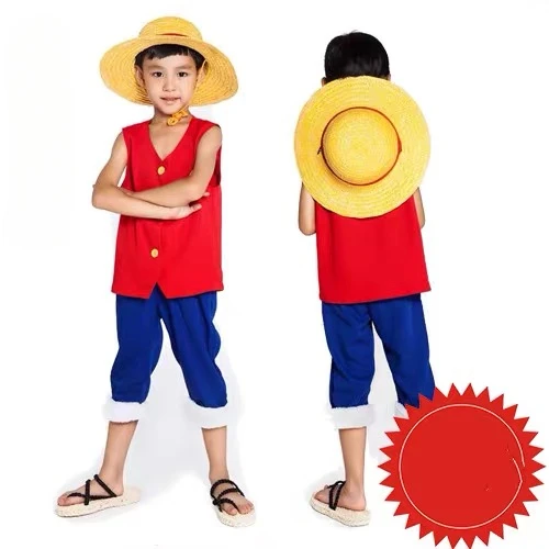 Ton enfant est fan de ONE PIECE et veut incarner le célèbre Monkey D. Luffy version \2 Years After\ (après l’ellipse) ? Ce costume de cosplay est fait pour lui ! Il comprend l’ensemble typique : haut rouge et short bleu, fidèle au look du personnage après les deux ans d’entraînement. En coton et polyester, il est confortable à porter. Neuf avec étiquettes, il est parfait pour le déguisement à l’école (Book Week, carnaval), pour Halloween, une fête d’anniversaire à thème manga, ou une convention cosplay. Convient aux garçons, le style est \Pants & Shorts\. Un cadeau qui fera sensation auprès des petits pirates en herbe. Livraison rapide, prêt à être porté pour vivre de grandes aventures. Vérifie le guide des tailles (souvent asiatique), mais en général, ça correspond bien. Laisse ton enfant libérer son esprit pirate et partir à la recherche du One Piece !