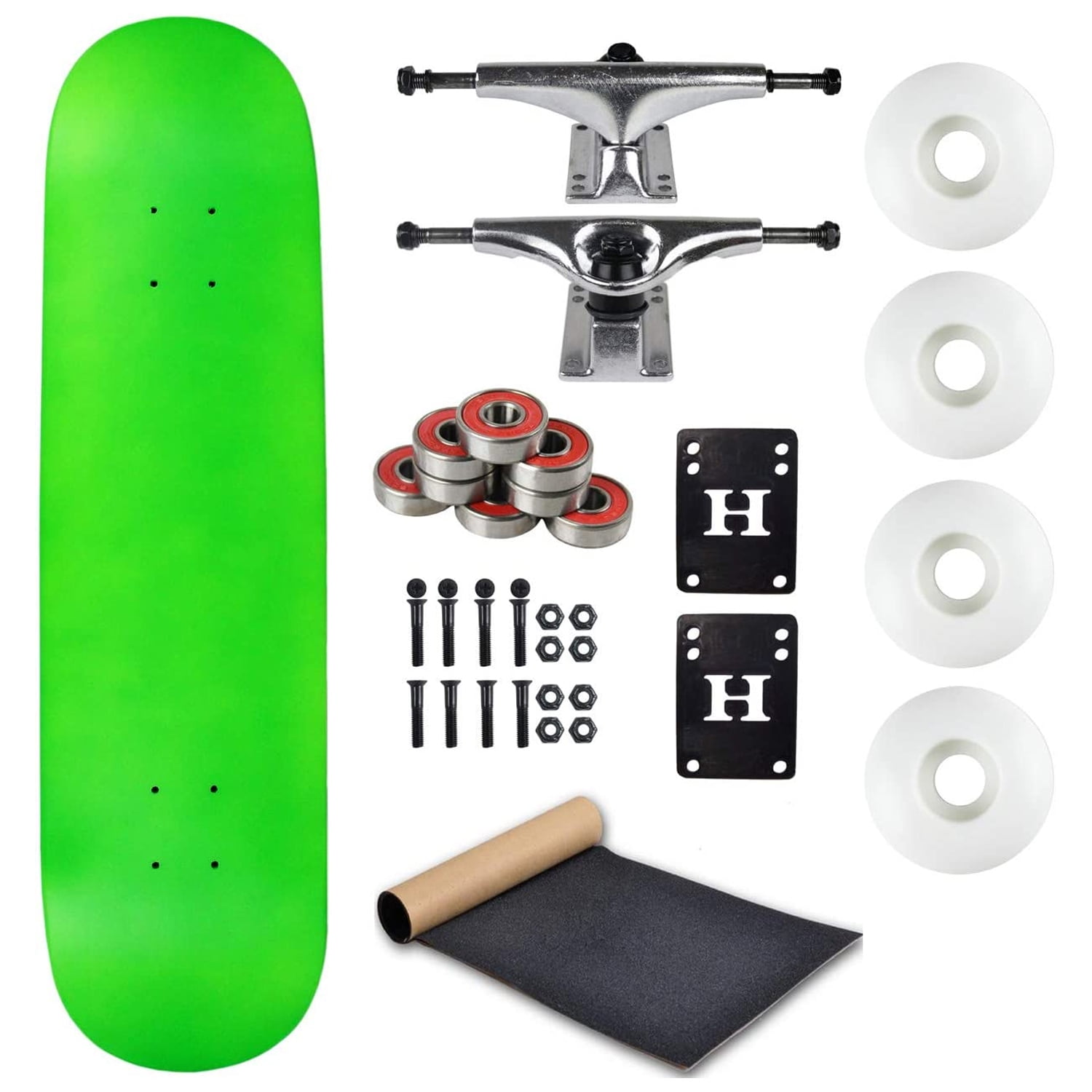 Yo les skateurs ! Un skate complet Moose, prêt à rider dès déballage. La planche fait 7.75 pouces de large, une taille polyvalente parfaite pour le street, le park, les figures. Le graphisme est un \Stain Green\ (vert teinté) super cool. Elle est montée avec des trucks noirs solides et des roues blanches de 52mm, idéales pour une bonne glisse et de la réactivité. Modèle DMB-77SGRN-BK52WH, UPC 780848464652. Conçu pour les adultes et ados. Marque Moose, connue pour ses skates accessibles et de bonne qualité. Il est neuf, en boîte. Parfait pour débuter, pour avoir une planche de rechange, ou pour rider sans se prendre la tête. Plus besoin de monter les pièces toi-même, tout est déjà assemblé. Attrape-le, descends dans la rue ou au skatepark, et fais parler la planche ! Le style et la fonction en un seul pack.