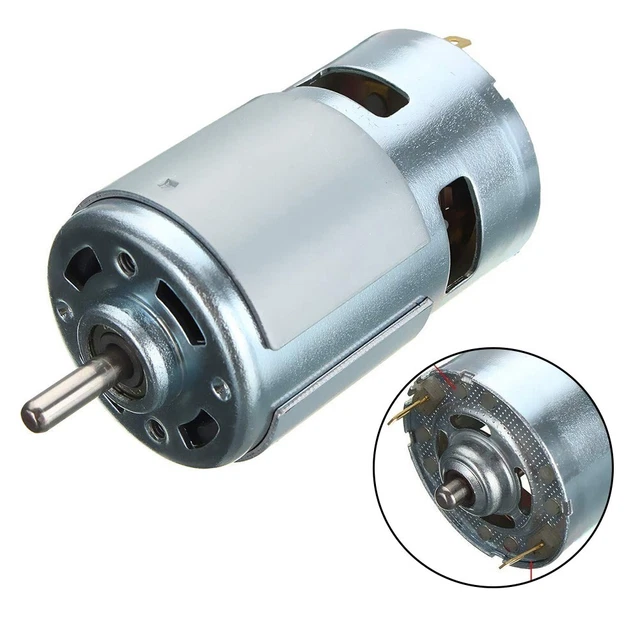 Hey les makers et bricoleurs ! Je propose un moteur à courant continu type 775, tension 18-21 volts, vitesse à vide 15000 tours/minute. Il est neuf, dans son emballage. Marque générique. Matériau : métal. Courant à vide : 1,1 A ; courant en charge : 9,2 A. Couple : 90 mN.m. Puissance de sortie : 128 W. Commutation par balais (brush). Parfait pour construire un souffleur DIY, une meuleuse, une perceuse, ou tout projet nécessitant un moteur puissant et rapide. Vérifiez que vous avez une alimentation adaptée (18-21V DC). Pas d'UPC. Si vous aimez créer des outils ou des machines, ce moteur est un bon composant de base. Livré nu, sans poulie ni accessoires. Des questions sur le câblage ? Je peux vous expliquer. Attention, ça tourne vite, portez des protections !