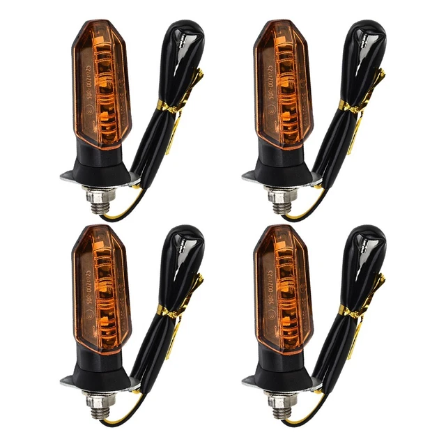 Customisez votre moto avec ce lot de 4 clignotants LED compacts et stylés ! De couleur noire, ils ont un design mini qui convient à de nombreux styles (custom, roadster, trail...). Ils fonctionnent en 12V, la couleur des LEDs est ambre (orange), et ils sont homologués 'Testé E' (norme européenne), ce qui est important pour la légalité sur route. Le filetage de fixation est de 10 mm, standard pour de nombreuses motos. Le fabricant est DED, référence DED2xMO00185. Ils sont présentés comme universels, compatibles avec Harley-Davidson, Honda, Suzuki, Yamaha et bien d'autres (vérifiez le câblage et les supports d'origine). Les LEDs sont plus brillantes, plus durables et plus économes en énergie que les ampoules classiques. Le produit est neuf dans son emballage. Parfaits pour remplacer des clignotants volumineux, pour un look plus épuré et moderne, ou tout simplement parce que les vôtres sont cassés. Pensez à vérifier si vous avez besoin d'un relais adapté aux LEDs pour éviter l'effet 'clignotement rapide'. Installation simple pour les bricoleurs.