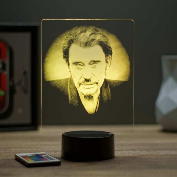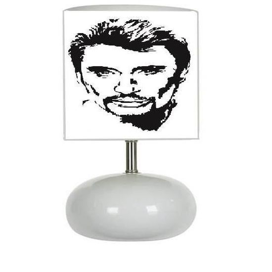 Coucou les fans de Johnny ! Cette lampe de chevet est un vrai hommage au rockeur, avec un style moderne et un look \Johnny à la moto\ – trop cool pour une chambre d'ado ou un bureau de fan. Elle est faite main en France, avec soin, et neuve dans son emballage d'origine. Dimensions : 25 cm de haut, 13 cm de large et de long. Abat-jour rond inclus, en noir classe. Elle s'allume par un bouton-poussoir simple, avec une lumière blanc chaud cosy (type E14, puissance 60 W max). Tension 220 V, classe énergétique A++ (économe). Fonctionne sur secteur. Parfaite pour une chambre, un salon, une chambre d'amis – partout où tu veux un peu de rock'n'roll. Assemblage requis, mais rien de compliqué. Certifiée CE, fabrication 2023. Si tu cherches un objet déco original, souvenir d'un fan, ou un cadeau pour un proche qui adore Johnny, cette lampe est géniale. Livraison soignée. Prêt à illuminer tes nuits ?