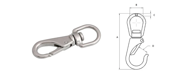 Un mousqueton solide en acier inoxydable 304, avec un œil pivotant - super pratique ! Taille variable selon le modèle (entre 65 et 115 mm environ). Idéal pour attacher la laisse de ton chien, faire un porte-clés robuste, raccorder des chaînes, ou en décoration marine/camping. Il tourne sur lui-même, ce qui évite que la corde ou la chaîne ne s'emmêle. Finition argentée, sans marque. Produit neuf. Si tu cherches un maillon fiable, résistant à la rouille, pour tes activités extérieures ou ton quotidien, ce mousqueton est parfait. Fabriqué en Chine.