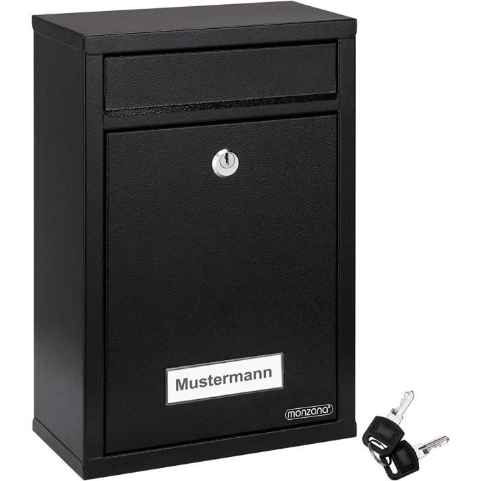 Coucou ! Cette boîte aux lettres murale en acier est à la fois élégante et solide. Couleur noir brillant, style moderne. Dimensions : 36,5 cm de large, 37 cm de haut, 13,5 cm de profondeur. Elle est verrouillable et inclut 2 clés pour la sécurité. Poids 4850 g, donc stable et robuste. Parfaite pour l'extérieur de ta maison, de ton bureau, ou même en usage commercial. Marque SWS, modèle 17250, garantie 1 an. Livrée avec des fixations pour le montage au mur. Une seule compartiment, mais de grande capacité (moins de 5 lbs). Si tu veux protéger ton courrier des intempéries et des regards indiscrets, tout en ajoutant une touche design à ta façade, cette boîte est un excellent choix. Installe-la et profite de la tranquillité d'esprit !