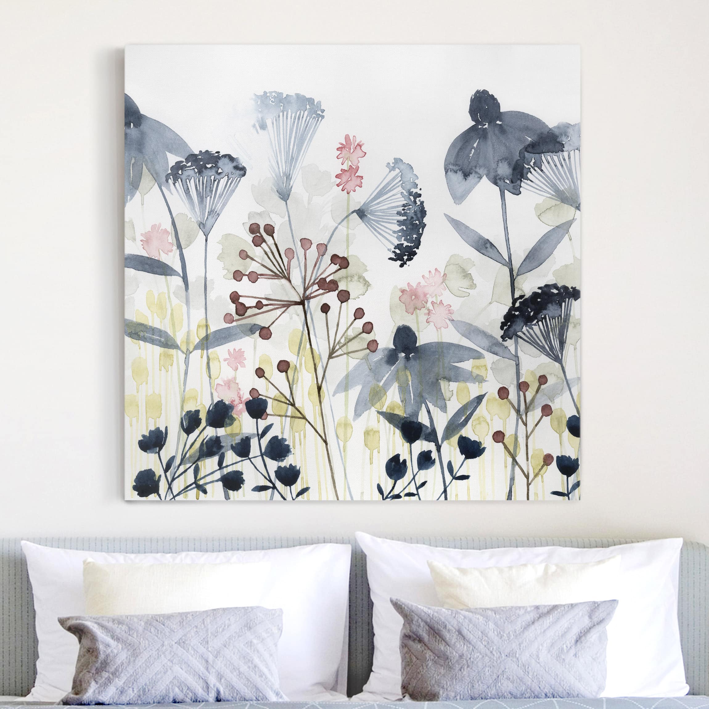 Donnez du caractère à votre mur avec ce grand tableau toile ! Format impressionnant (115 cm de long x 55 cm de haut), il représente une jolie composition de bougies et de vases de fleurs sur une étagère, dans des tons doux et chaleureux. L'impression sur toile est de qualité, tendue sur un châssis en bois. Livré prêt à accrocher. Déco instantanée pour le salon, la chambre, la salle à manger… Style scandinave ou moderne. Une touche d'élégance et de sérénité.