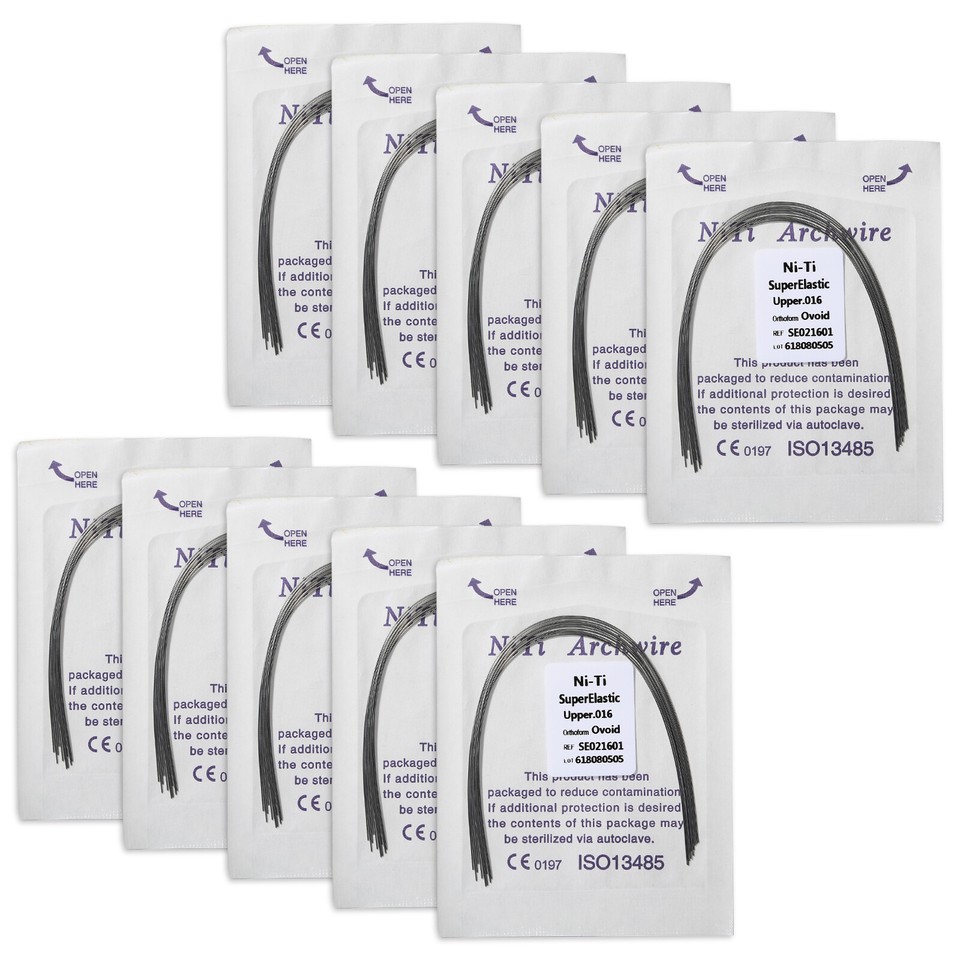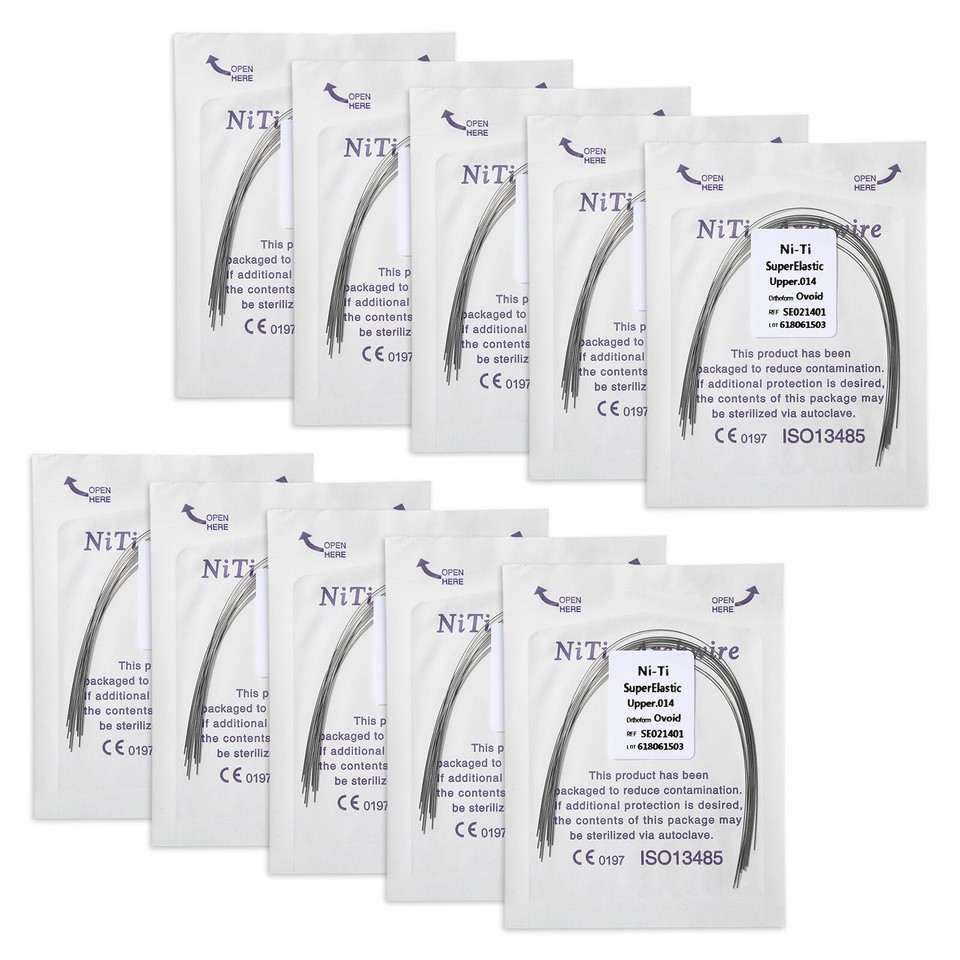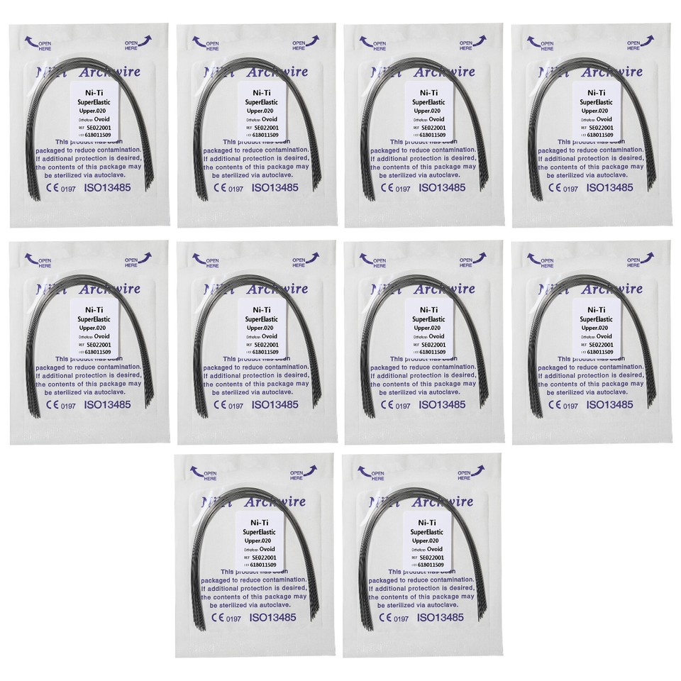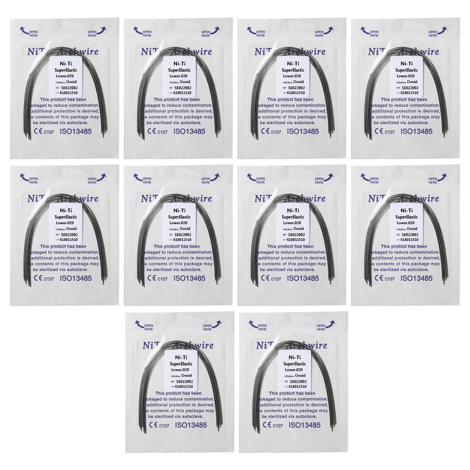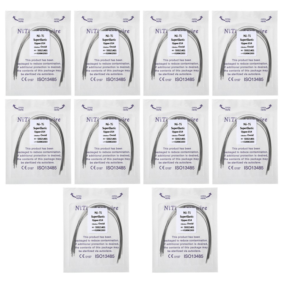 Destiné aux professionnels de l'orthodontie ou aux étudiants dentistes, ce lot est très pratique. Il contient 10 arcs orthodontiques (ou \fils\) ronds/ovales. Ils sont en alliage Niti (Nickel-Titane) super élastique et mémoire de forme, ou en acier inoxydable, selon les modèles. Le lot propose plusieurs diamètres courants : 012U/L, 014U/L, 016U/L, 018U/L, 020U/L (U/L pour Upper/Lower, arcades supérieure et inférieure). C'est du matériel neuf, dans son emballage d'origine, non stérilisé. Idéal pour avoir un stock de tailles variées sous la main au cabinet. Les produits ont les numéros d'homologation FDA 510(k) requis pour être utilisés aux États-Unis (pour les pièces à main, lampes de polymérisation etc., ce qui indique un certain sérieux). Fabriqué en Chine, sans marque spécifique, mais conforme aux standards du métier. Parfait pour les ajustements, les remplacements ou la pratique. Un essentiel dans le tiroir du pro !