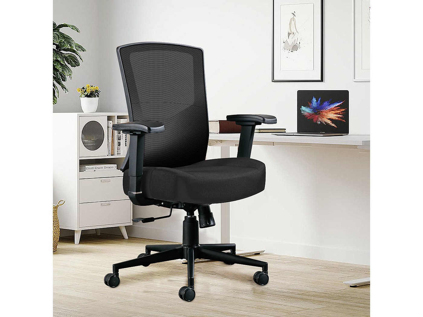 Vous passez des heures devant l'écran ? Cette chaise de bureau noire Diva Home va changer votre vie ! Elle est ergonomique, avec un dossier en mesh respirant et un soutien lombaire pour le dos. Le siège est rembourré, la hauteur est réglable (jusqu'à 63 cm), et elle pivote à 360 degrés. Cadre en acier et plastique, solide jusqu'à 136 kg. Largeur du siège : 52 cm, profondeur : 50 cm. Roulettes incluses, bien sûr. Style opérateur/tâche, parfait pour le bureau à la maison ou au travail. À monter soi-même, c'est facile. Fabriquée en Chine, neuve dans son emballage. Votre dos vous dira merci !