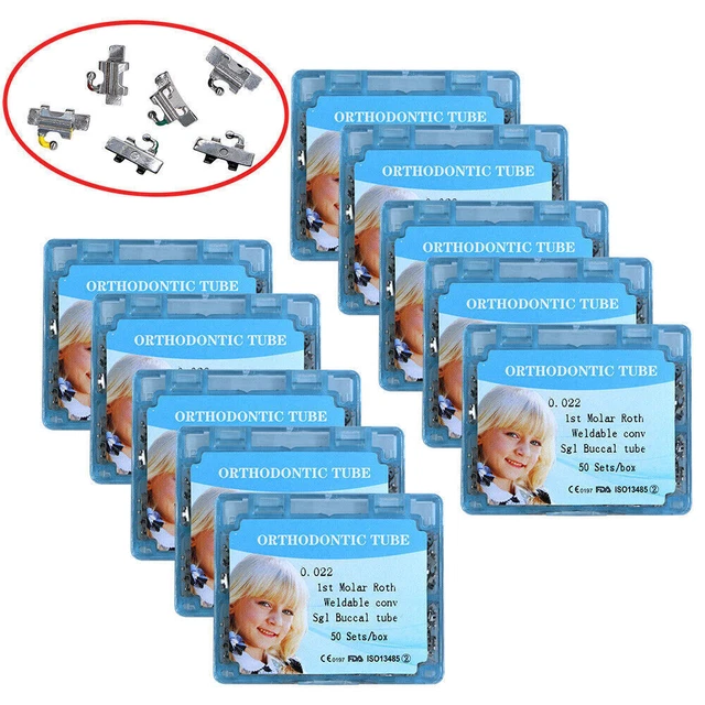 Destiné aux professionnels de l'orthodontie (orthodontistes, prothésistes) ! Ce lot comprend 200 tubes buccaux (ou brackets tubulaires) non convertibles de couleur rouge. Ils sont conçus pour être soudés ou collés sur la deuxième molaire. Le diamètre du canal interne est de 0.018 pouce (0.018\), ce qui correspond à une taille d'arc spécifique. La couleur rouge facilite probablement l'identification. Marque Shaind2104, fabriqué en Chine. Produit neuf, stérile dans son emballage d'origine. Ces tubes sont des composants standards dans la fabrication ou la réparation d'appareils orthodontiques fixes. Un stock pratique pour le cabinet. UPC 605725638196. Usage strictement professionnel.