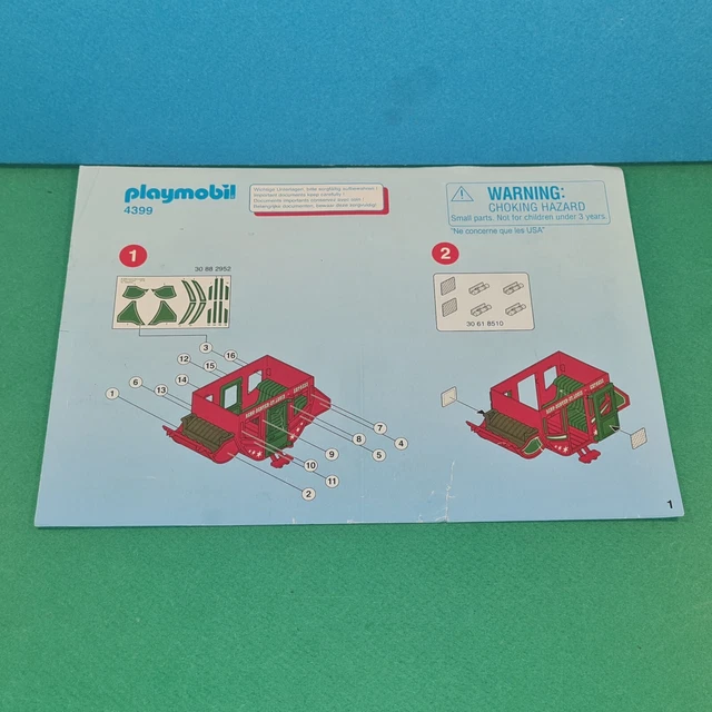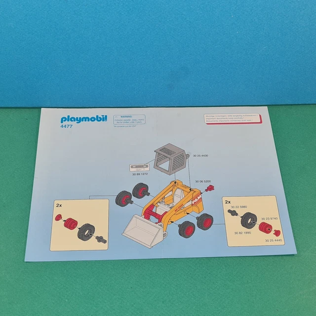 Tu as perdu la notice de ton Playmobil ? Ou tu collectionnes les anciens catalogues ? Cette annonce est pour toi ! Il s’agit de notices de montage et de catalogues Playmobil en version d’occasion – donc ils ont été utilisés, mais sont encore en bon état (à vérifier avec le vendeur pour les détails).\n\nLes documents sont d’origine, fabriqués en Allemagne. Ils couvrent probablement différents sets ou années – l’annonce dit « au choix », donc tu dois pouvoir sélectionner ceux qui t’intéressent. L’âge recommandé est indiqué comme 3-4 ans, mais ça concerne surtout les jouets d’origine.\n\nParfait pour compléter un set Playmobil acheté d’occasion sans sa notice, ou pour les collectionneurs qui aiment avoir toute la documentation. C’est un petit bout de nostalgie qui peut aussi aider à monter correctement les pièces. N’hésite pas à contacter le vendeur pour savoir exactement quels modèles sont disponibles. Une annonce pratique pour les fans de la marque !