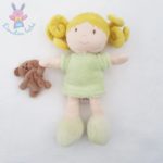 Adorable poupée « Les Demoiselles » de la marque Doudou & Cie, blonde, tenant un nounours et une pomme verte. Vendue en lot de 3 poupées. Neuf, jamais utilisé, mais peut être sans emballage d’origine ou avec boîte ouverte. Possibilité de petits défauts mineurs (à vérifier en photo). Idéal pour collection, décoration chambre d’enfant ou cadeau. Matière douce, dimensions standard poupée. Marque reconnue pour ses jouets de qualité. Convient aux enfants à partir de 3 ans (surveillance recommandée). EAN non applicable. Vendu sans accessoires supplémentaires sauf mention. Parfait pour compléter une série ou offrir.