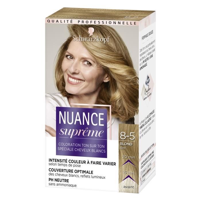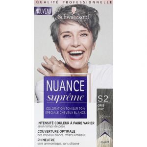 Pour une couleur grise sublime et durable, tournez-vous vers le professionnel : Schwarzkopf Nuance Suprême. Cette teinture permanente de nuance S1 (Gris Clair) permet de couvrir efficacement les cheveux blancs et d'unifier votre couleur naturelle. Formule sans ammoniaq, elle est douce pour le cheveu et le cuir chevelu. Convient à tous les types de cheveux. Livrée neuve, dans son emballage d'origine scellé. Suivez bien les instructions pour un résultat parfait à la maison. Offrez-vous le luxe d'un gris lumineux et soyeux !