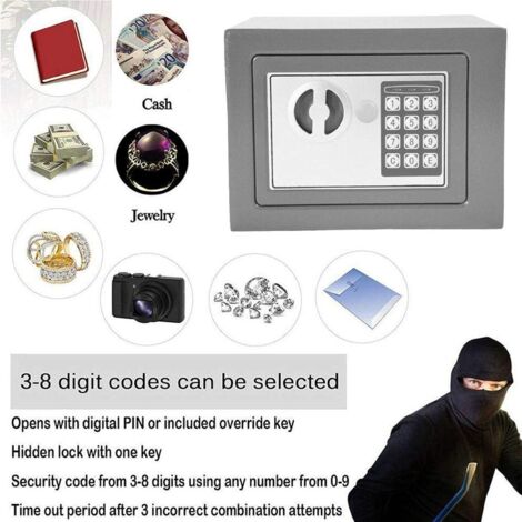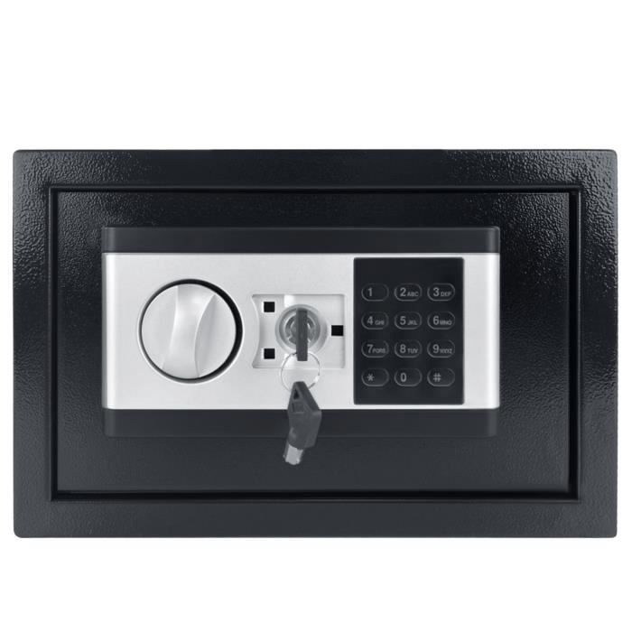 Ce coffre-fort numérique offre une sécurité pratique pour la maison ou le bureau. D'une capacité de 16 litres, il est en acier robuste avec une serrure électronique à code numérique. Modèle SA105, couleur noir/argent. Il est portable, donc vous pouvez le déplacer facilement, mais il peut aussi être fixé (prévoyez des trous de fixation). Parfait pour ranger de l'argent, des bijoux, des documents importants, des passeports ou des objets de valeur. La combinaison numérique est programmable et plus pratique qu'une clé. Il est neuf, dans son emballage d'origine. Idéal pour les petits espaces, les chambres d'étudiant, les chambres d'hôtel (en voyage) ou comme premier niveau de sécurité. La marque est Crystals. Pensez à changer le code dès réception et à le garder secret. Un achat malin pour avoir l'esprit tranquille et organiser vos précieux en toute sécurité. Livraison rapide et discrète.