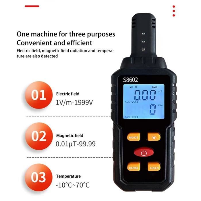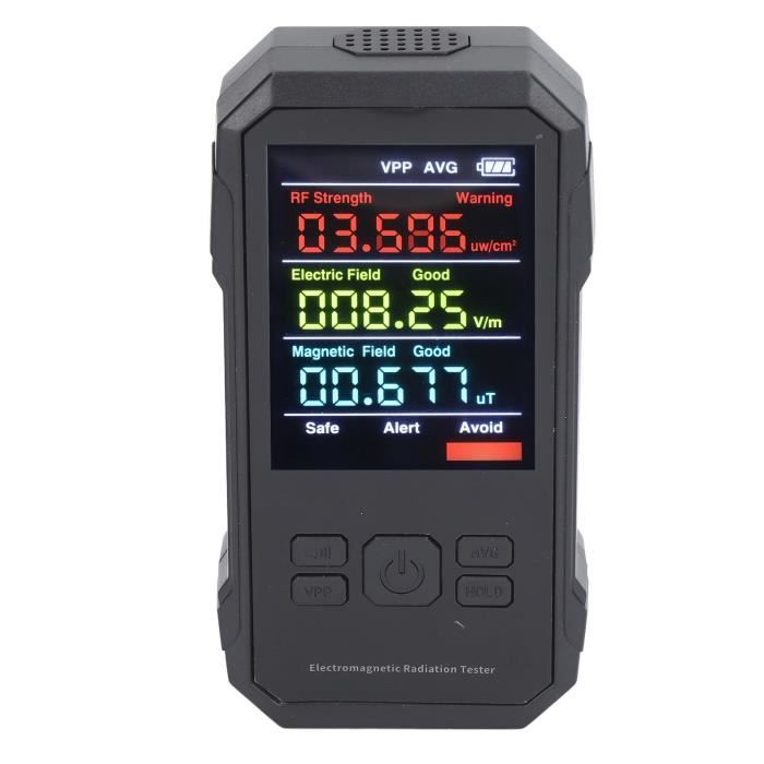 Ce détecteur numérique te permet de mesurer les champs électromagnétiques autour de toi, pratique si tu es sensible aux ondes ou curieux de ton environnement. Il est neuf, jamais utilisé, dans son emballage d'origine. Marque sans marque. Il mesure trois choses : l'intensité du champ électrique (0-999.99 V/m, 20Hz-100MHz), l'intensité du champ magnétique (0-99.999 µT, 20Hz-1MHz), et les radiofréquences RF (0-99.999 pW/cm², 50MHz-5GHz). Écran LCD digital, portable, piles probablement incluses. Tu peux vérifier l'exposition près des lignes électriques, des box Wi-Fi, des téléphones, des micro-ondes, etc. Certains l'utilisent pour choisir un emplacement de lit ou de bureau. Attention, c'est un appareil de mesure grand public, pas un équipement professionnel de laboratoire. Livré avec le mode d'emploi (probablement en anglais). Facile à utiliser, allume et approche de la source. Un outil intéressant pour les geeks, les bricoleurs, ou les personnes soucieuses de leur environnement électromagnétique. Explore ton invisible !