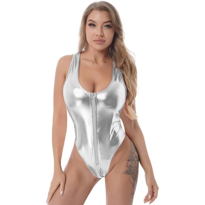 Cette combinaison pour femme est parfaite pour une soirée cocktail, une fête ou un événement spécial. Tissu : nylon et spandex pour un effet brillant et une coupe ajustée. Bretelles spaghetti, encolure arrondie, sans manches. Taille unique (one size). Style : jumpsuit, motif uni. Neuf avec étiquettes. Marque sans nom, mais qualité correcte pour un look flashy et confortable. Idéal pour celles qui cherchent une pièce unique, légère et facile à porter. Mise en valeur garantie grâce à son fini brillant et sa coupe flatteuse.