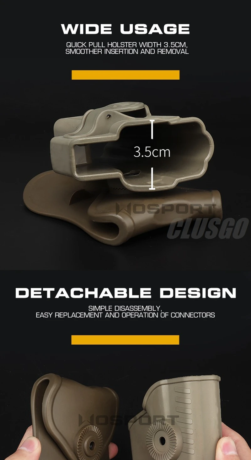 Un holster de ceinture tactique (OWB - Outside Waistband) ambidextre, pour pistolet. En nylon robuste, de couleur noire. Il comprend aussi un porte-magazine intégré (pour 1 chargeur). Compatible avec les pistolets de calibres 9 mm Luger, .380 ACP, .40 S&W, .45 ACP (ou similaires). Marque Depring. Fixation par clip ou directement sur une ceinture jusqu'à 1,5 pouce de large. Positionnable à 3 heures ou 11 heures sur la ceinture, avec une inclinaison positive. Niveau de rétention 1. Idéal pour la chasse ou le tir récréatif. Garantie à vie du fabricant. Produit neuf, jamais porté, dans son emballage d'origine.