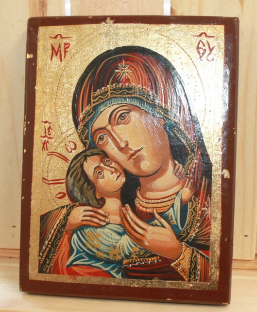 Bonjour. Cette icône religieuse orthodoxe de style byzantine est une belle pièce de décoration spirituelle. C'est une reproduction neuve, peinte sur bois et encadrée. Sa particularité ? Elle intègre une petite ampoule électrique (ou une LED) qui éclaire l'icône de l'intérieur, créant une ambiance chaleureuse et recueillie. Parfaite pour un coin prière, une chambre, ou pour offrir à un proche croyant. Fabriquée en Grèce, par Scent-of-Byzantium.com. Elle apporte une touche de sérénité et de tradition à ton intérieur. Bien plus qu'un simple tableau, c'est un objet de dévotion qui rayonne. Pense à vérifier le voltage et le type de culot de l'ampoule (peut-être inclus). Livrée avec soin. Une idée de cadeau unique et significative.