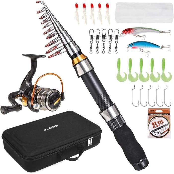 Parfait pour les pêcheurs débutants ou occasionnels, ce combo complet vous offre tout le nécessaire pour partir à l'aventure ! La canne est télescopique, avec 6 sections, ce qui la rend super pratique à transporter et à ranger. Elle mesure une fois dépliée ? C'est une canne spinning classique. Elle est livrée avec un moulinet 'toupie' déjà monté, prêt à l'emploi. Le tout est de couleur rouge vif. Ce combo convient à la fois pour la pêche en eau douce (rivière, lac) et en mer (pêche côtière). C'est un produit neuf, générique, vendu dans son emballage. Idéal pour une sortie en famille, pour initier un enfant, ou comme matériel de dépannage toujours prêt dans le coffre de la voiture. Un bon rapport qualité-prix pour découvrir la pêche sans se ruiner !