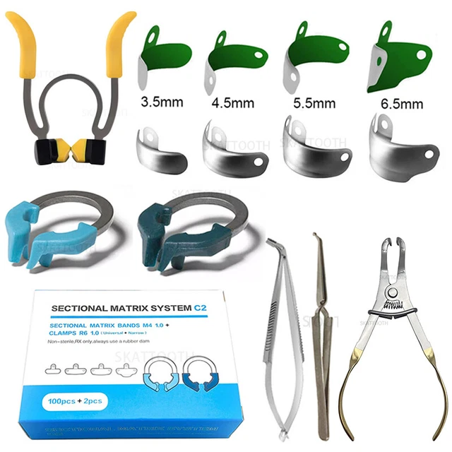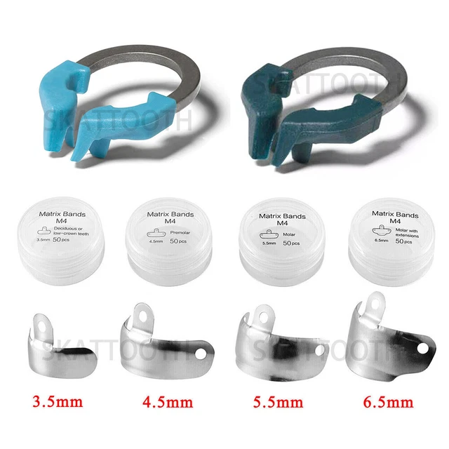 Ces bandes matricielles en titane sont conçues spécialement pour les soins dentaires chez les enfants (dentisterie pédiatrique). Le set comprend des bandes (pour isoler la dent pendant un plombage) et des anneaux ou pinces (type M4) pour les maintenir en place. Le titane est léger, résistant et biocompatible. Ces instruments sont essentiels pour réaliser des obturations précises et durables sur les petites dents de lait. Ils sont neufs, stériles (vérifiez l'annonce), et vendus dans leur emballage d'origine. Parfait pour les dentistes, les pédodontistes ou les étudiants en dentaire qui ont besoin de matériel fiable pour leurs jeunes patients. Un investissement professionnel pour des soins de qualité.