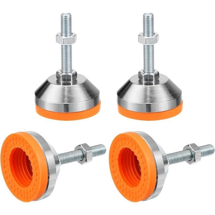 Un petit truc super pratique pour le bricolage ou l'industrie ! Ce pack comprend plusieurs pieds de nivellement réglables. Ils sont neufs, sous emballage. La base est fixe, et la hauteur se règle avec une vis en acier inoxydable, donc résistants à la corrosion. Fabriqués au Royaume-Uni par Vital Parts. Parfaits pour stabiliser un meuble bancal, une machine-outil, un établi, une armoire, ou tout objet qui doit être parfaitement de niveau et stable. Beaucoup plus solides et précis que les petits patins en plastique. Un accessoire simple qui règle beaucoup de problèmes d'instabilité !