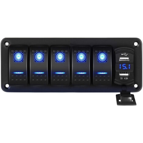 Ce panneau de commutation est un vrai couteau suisse pour ton véhicule ou ton bateau ! Il combine 4 interrupteurs à bascule (avec LEDs bleues), un afficheur voltmètre numérique, et deux ports USB de charge. Tension : DC 12V ou 24V, donc compatible avec la plupart des voitures, camping-cars, bateaux. Matériau : ABS plastique et métal, taille environ 4.9x3.5x4.3 pouces. Marque non spécifiée, mais le produit est neuf et de bonne facture. Idéal pour contrôler des accessoires : phares additionnels, antibrouillards, feux de travail, pompes, etc. Le voltmètre te permet de surveiller la tension de ta batterie. Les USB chargent téléphones et tablettes. Garantie d'un an. Un installation simple pour les bricoleurs, remplacement direct souvent possible. Donne un look pro et organise ton tableau de bord. Parfait pour les aménagements perso !