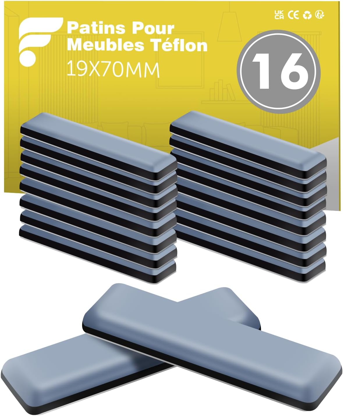 Vos meubles rayent le sol ou sont difficiles à déplacer ? Ces patins glisseurs en téflon sont la solution simple et efficace ! Le lot comprend 32 patins en forme de triangle, de dimensions 45 mm x 45 mm x 65 mm. La couleur est marron. Le téflon (PTFE) est un matériau glissant et protecteur, qui permet de faire coulisser les meubles lourdement chargés sans effort et sans abîmer le sol (parquet, carrelage, stratifié). Ils se collent facilement sous les angles ou les pieds de vos meubles (armoires, buffets, lits, tables…). Produit neuf, générique (sans marque), dans son emballage d'origine. Une petite astuce de rangement et de protection qui change vraiment la vie au quotidien !