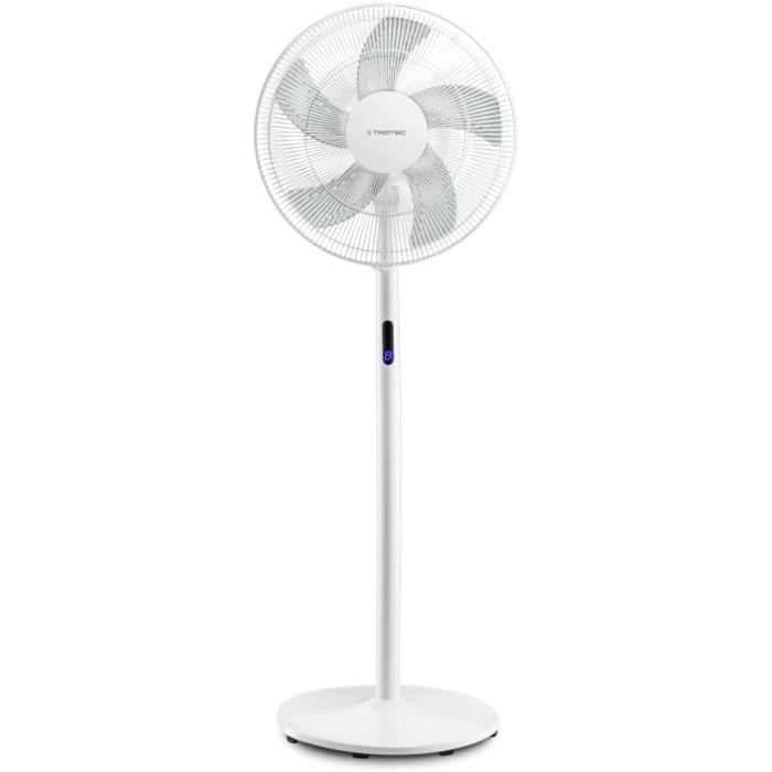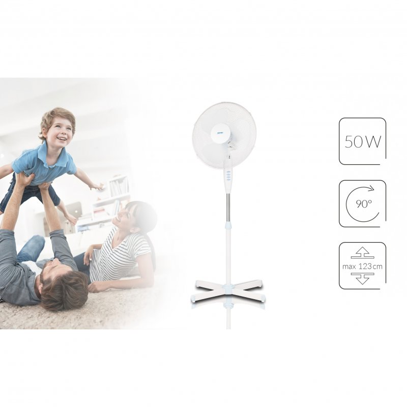 Besoin d'un bon courant d'air cet été ? Ce ventilateur sur pied Grafner est un vrai must ! Avec ses 41 cm de diamètre et ses 5 pales, il brasse beaucoup d'air. Il oscille pour répartir la fraîcheur dans toute la pièce, et sa hauteur est réglable (jusqu'à 121 cm) pour l'adapter à vos besoins. Il a 3 vitesses, est étonnamment silencieux pour un ventilateur de cette taille, et son efficacité énergétique est classée A++ (très économique). Alimentation 230V, câble de 1,5m. En polypropylene blanc, design simple et moderne. Parfait pour le salon, la chambre ou le bureau. Neuf, sous emballage d'origine.