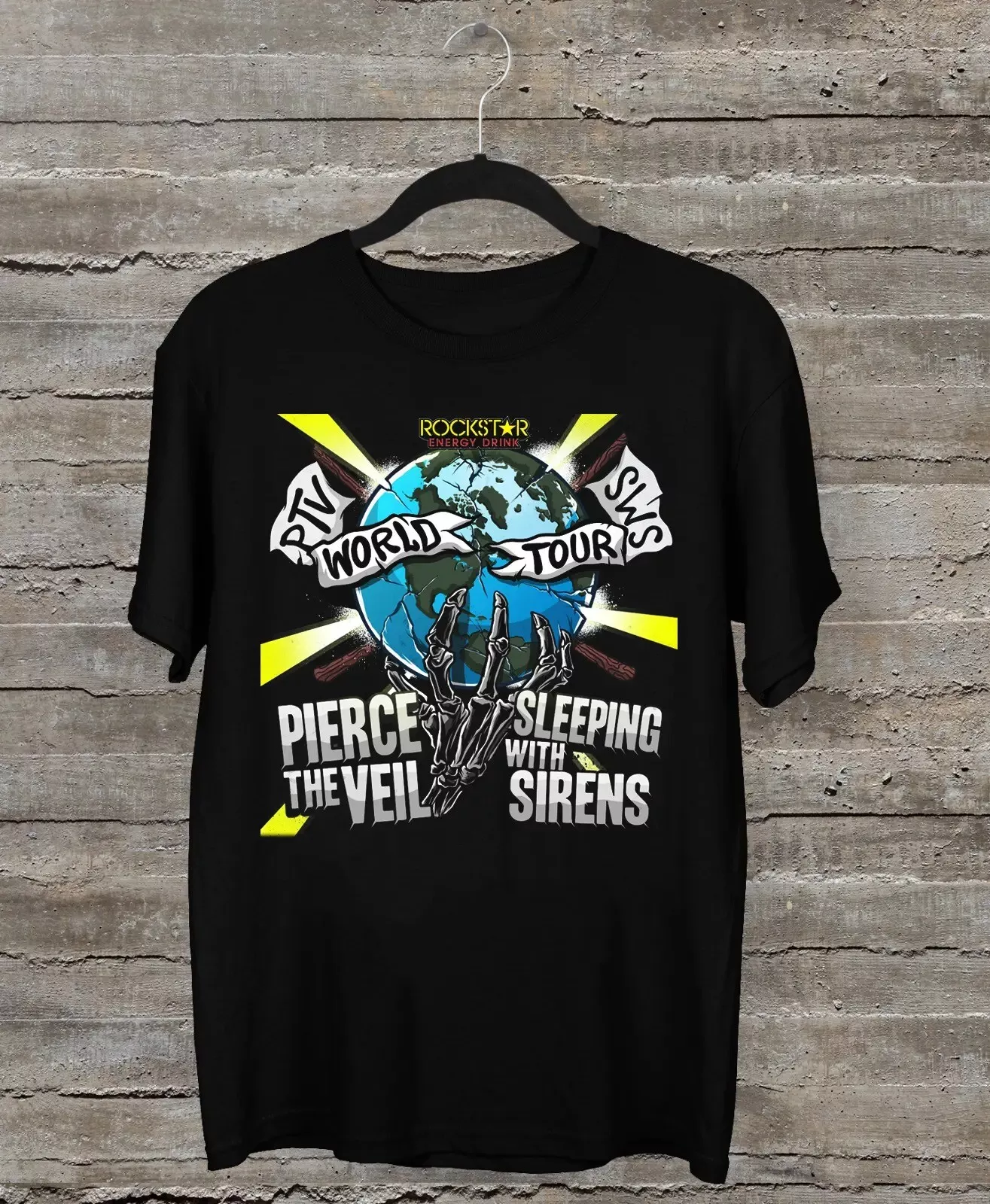 Hey les fans de rock et de Pierce The Veil ! Ce t-shirt commémore le Sleeping Sirens World Tour 2015, c'est un vrai collector pour ta garde-robe.