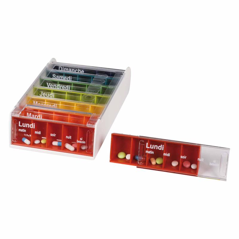 Coucou ! Pour ne plus jamais oublier vos médicaments, ce pilulier hebdomadaire Anabox est parfait. Il est neuf, jamais utilisé. Il comporte 7 cases, une pour chaque jour de la semaine, clairement indiquées. La couleur jaune est gaie et facile à repérer. La marque est Anabox. C'est un modèle simple et efficace, avec un couvercle transparent probablement, pour voir d'un coup d'œil si vous avez pris vos comprimés. Idéal pour les personnes qui suivent un traitement quotidien, pour les seniors, ou pour organiser ses vitamines. Pratique pour les voyages aussi. Les cases sont assez grandes pour plusieurs cachets. Un outil d'organisation qui apporte de l'autonomie et de la sérénité. Pensez à votre santé simplement !