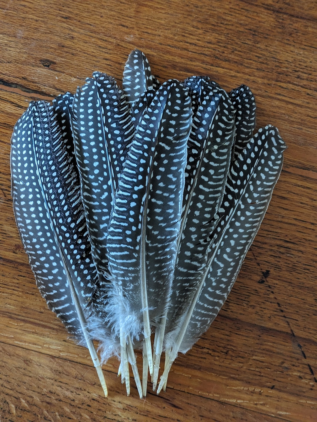 Vous cherchez des plumes naturelles pour vos créations ? Ce lot de 24 plumes de pintade est parfait ! Elles sont entièrement naturelles, récoltées sans cruauté, et dans leur état d'origine. Chaque plume présente ce joli motif noir et blanc caractéristique de la pintade. Idéales pour le scrapbooking, la fabrication de bijoux, la décoration de vêtements, les accessoires de carnaval ou même pour les costumes. Elles sont assez robustes et légères, avec une forme qui tient bien. Provenance : États-Unis. Si vous êtes un artiste, un créateur ou simplement quelqu'un qui aime les matériaux naturels, ces plumes vont vous inspirer. Elles sont vendues en lot, parfait pour avoir de la matière pour plusieurs projets. Un petit détail qui fait toute la différence dans vos réalisations !