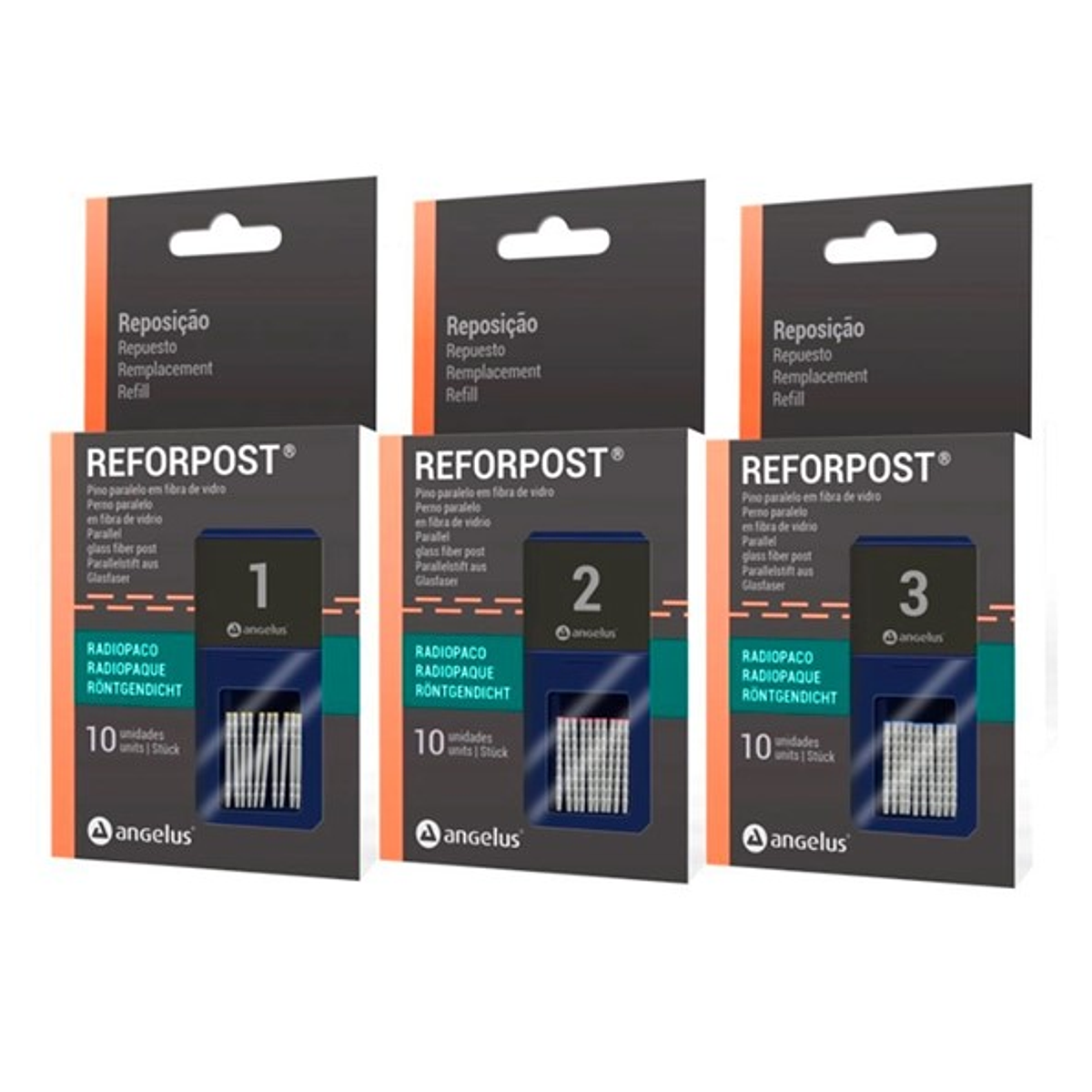 Salut ! Voici des piquets dentaires Angelus Reforpost Taille 1, en fibre de verre, parfaits pour les travaux de renforcement radiculaire. Ce lot comprend 15 pièces neuves, jamais utilisées, dans leur emballage d'origine. C'est du 100% authentique, garanti !\n\nIdéal pour les labos dentaires, les dentistes ou les endodontistes. Fabriqué au Brésil par Angelus, une marque de confiance. On expédie rapidement avec USPS, UPS, DHL E-commerce ou Fedex, comme vous voulez.\n\nCaractéristiques clés :\n- Matériau : Fibre de verre\n- Taille : 1\n- Quantité : 15 piquets\n- Marque : Angelus\n- Modèle : Reforpost\n- Usage : Laboratoire dentaire, Dentisterie, Endodontie\n- Origine : Brésil\n\nParfait pour des restaurations solides et durables. Si vous avez des questions, n'hésitez pas !