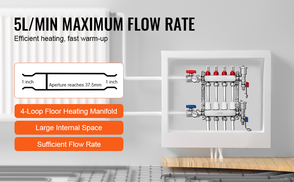 Ce collecteur (manifold) en acier inoxydable 304 est conçu pour les installations de plancher chauffant hydraulique en tube PEX. Il a 4 voies (4 circuits de chauffage) avec un espacement de 50 mm entre les départs. Le diamètre du tube principal est de 40 mm (équivalent DN32). Il est conçu pour des tubes PEX de 1/2 pouce (diamètre extérieur 16 mm / intérieur 12 mm). La particularité : la partie départ (aller) a des débitmètres réglables pour équilibrer chaque circuit, et la partie retour a des vannes à noyau en laiton pour l'arrêt individuel. Pression nominale PN 1.2 Mpa. Résiste à des températures de 1 à 95°C. Traitement de surface par brossage. Poids : 4 kg. Marque GDRASUYA10. Notez les restrictions d'expédition (pas au Brésil, Porto Rico, etc.). C'est un produit neuf, robuste, pour une installation professionnelle ou pour un bricoleur très averti en chauffage. Il facilite grandement le réglage et la maintenance de votre plancher chauffant.