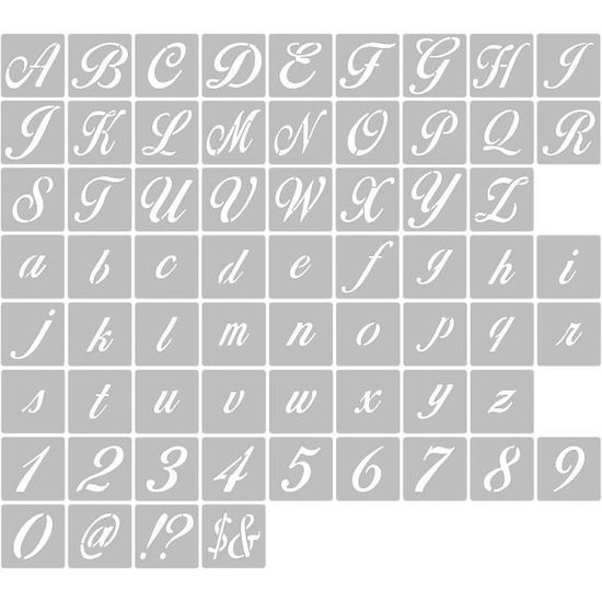 Donnez un style rétro et élégant à vos projets créatifs avec ce pochoir d'alphabet complet en style victorien ! Il comprend des lettres, des chiffres et des symboles (référence #060). Marque BigBite Studio. En film polyester (type Mylar) solide et réutilisable. Parfait pour peindre sur des murs, des meubles, des portes, des toiles... Style calligraphie vintage super chic. Neuf dans son emballage. Idéal pour les loisirs créatifs, la déco maison, ou même les mariages. Laissez libre cours à votre imagination pour créer des inscriptions uniques !