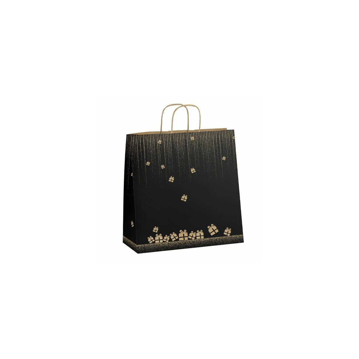 Ces sacs en papier noir sont parfaits pour emballer vos cadeaux ou vos plats à emporter de manière élégante ! Ils sont neufs, jamais utilisés. Le papier est de type « high gloss ribbed », c'est-à-dire un papier glacé et cannelé, ce qui leur donne un look chic et solide (environ 100 GSM). Ils sont équipés de poignées torsadées noires, pratiques pour être transportés. Marque : Stronghold. Fabriqués au Royaume-Uni. Ils ne sont pas personnalisés et ne font pas partie d'un bundle. Idéaux pour un mariage, un anniversaire, une fête ou même pour un commerce de vente à emporter qui veut soigner sa présentation. Ils ajoutent une touche classe à n'importe quel présent. Un essentiel pour vos préparatifs d'événements !