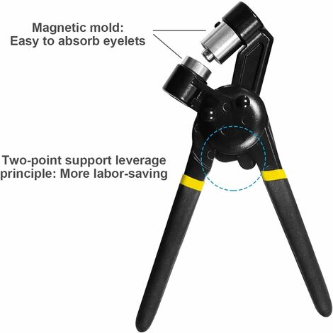 Ce kit de presse à œillets manuelle est super pratique pour poser des œillets de 10 mm (3/8″) sur de la bâche, de la toile, du cuir, etc. Il comprend la presse, un poinçon pour percer le trou et 5 outils d’installation. Tout en métal, solide, pas besoin de piles. Référence 8210. Parfait pour les projets DIY, la maroquinerie, la réparation de stores, la customisation de sacs… Le produit est neuf, prêt à l’emploi. Un outil simple qui rend bien des services !