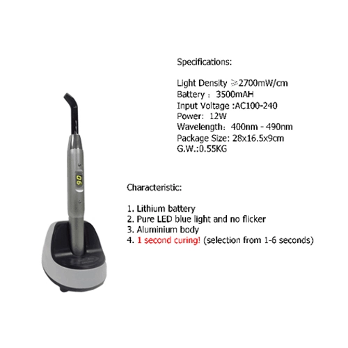 À l'attention des dentistes, orthodontistes et prothésistes ! Lampe de polymérisation (durcissement) dentaire sans fil, de marque YS. Elle est neuve, sous blister d'origine. Puissance 10W, intensité lumineuse réglable entre 2000 et 2700 mW/cm², longueur d'onde 420-480nm (bleue). Alimentation 100-240V. Parfaite pour durcir les composites, les colles orthodontiques, etc. Très maniable grâce à son design sans fil. Livrée avec son chargeur probablement (vérifie photo). Produit professionnel, stock américain. Si tu as besoin d'un outil fiable et efficace pour ton cabinet ou labo, c'est un bon choix. N'hésite pas pour les spécifications techniques.